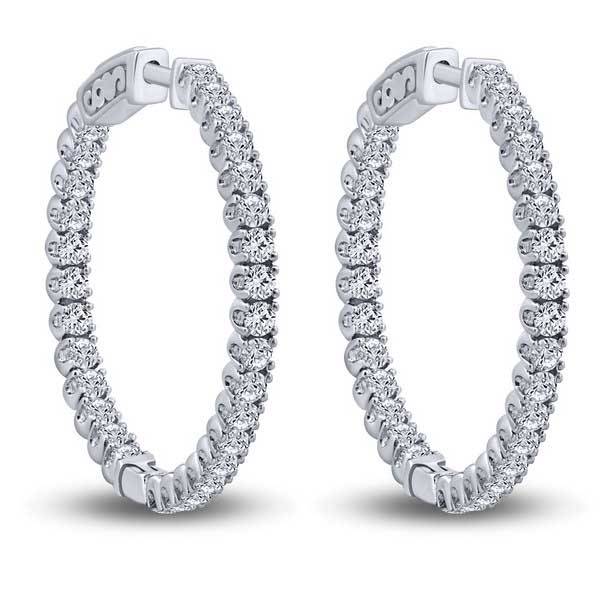 14K White Gold 2.00 ctw Diamond Hoops Inside Out Earrings