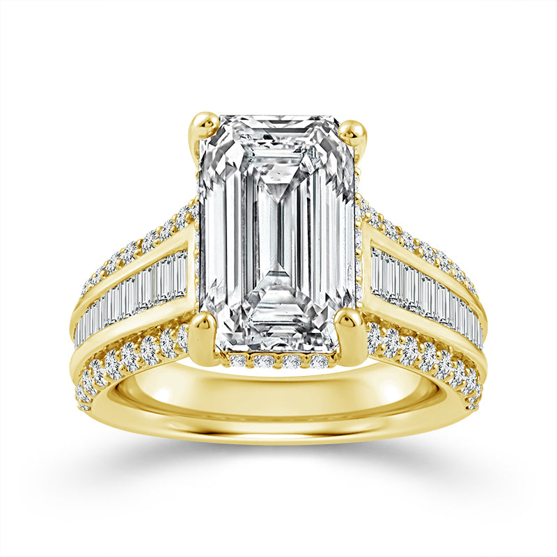 14K Yellow Gold 6.55 ctw Lab-Grown Diamond Emerald Engagement Ring