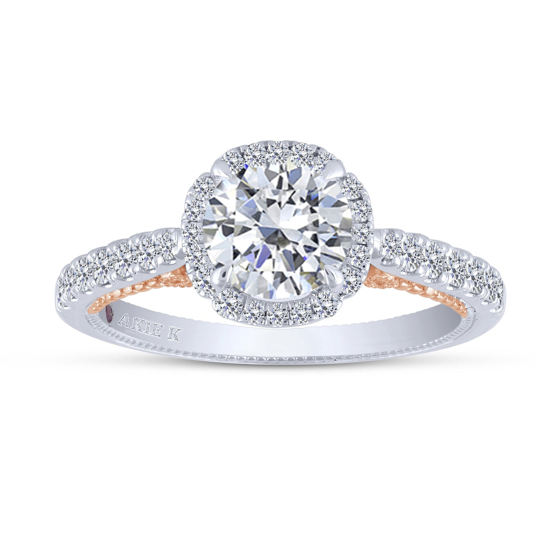 This striking semi-mount ring is masterfully crafted in 14K two-tone gold (White Gold and Pink...
