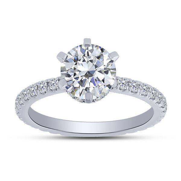 This exquisite semi-mount bridal ring is crafted from lustrous 14K white gold, ready to hold...