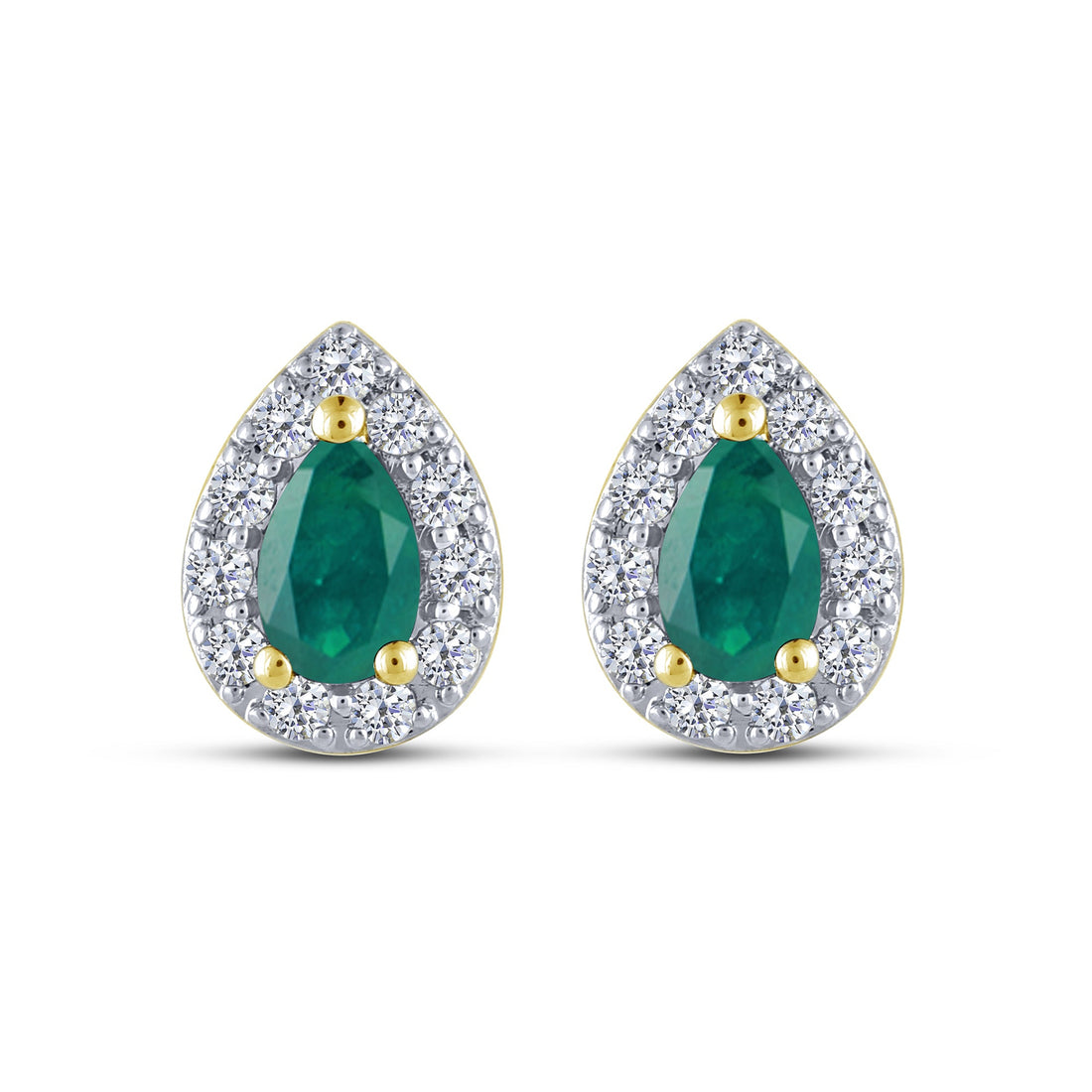 10K Yellow Gold Pear Shaped Green Emerald Earring