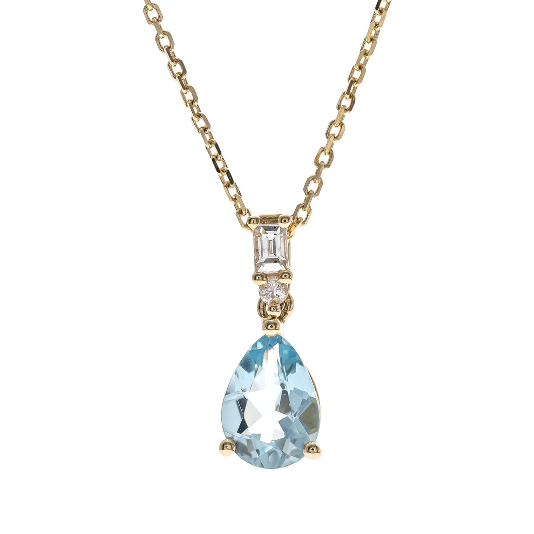 10K Yellow Gold 0.08 ctw Diamond 0.89 Ctr Natural Aquamarine Pendant