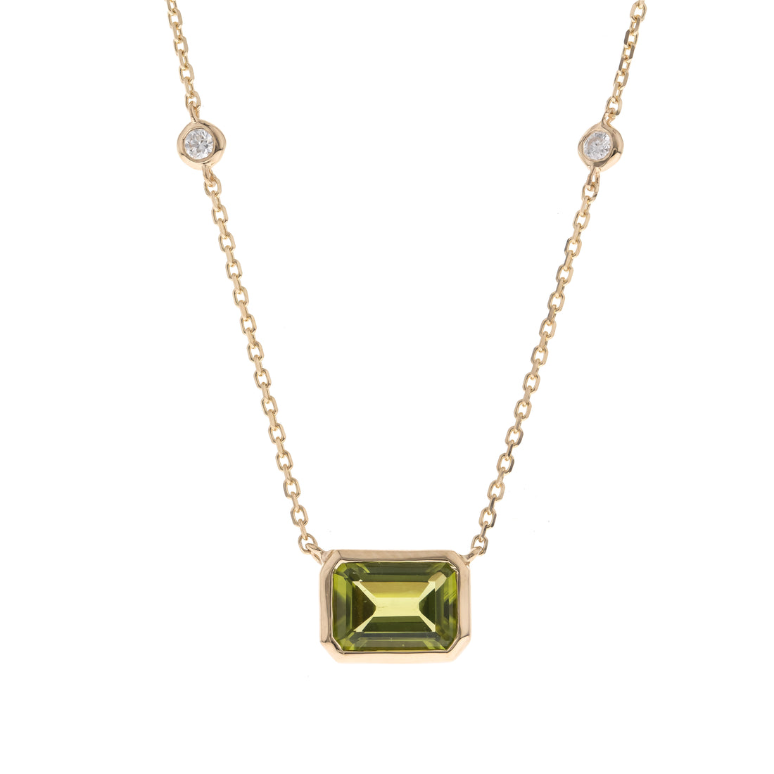 10K Yellow Gold 0.05 ctw Diamond 1.61 Ctr Natural Peridot Necklace