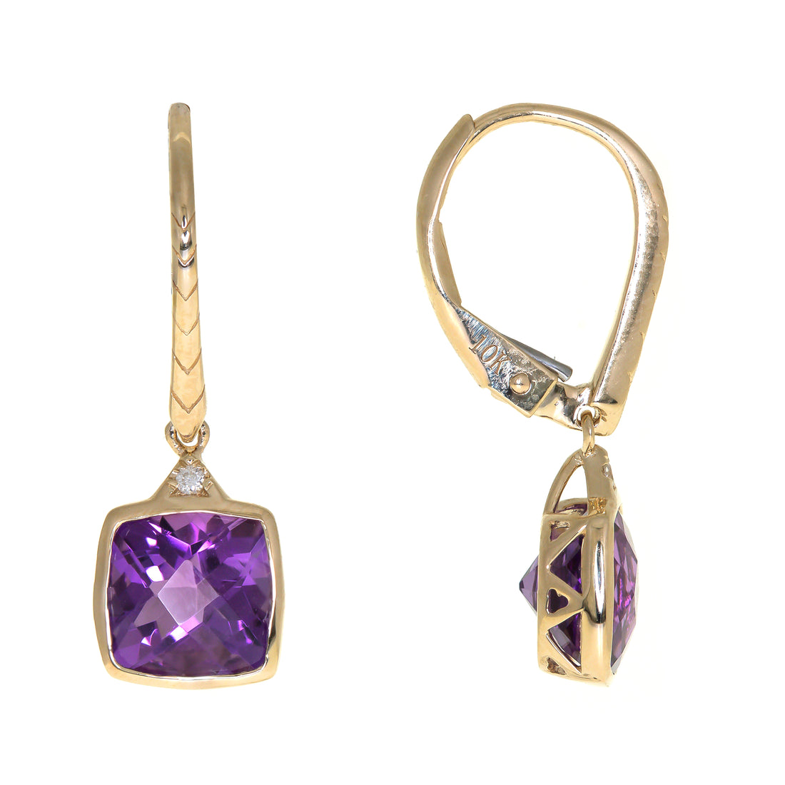 10K Yellow Gold 0.01 ctw Diamond 3.09 ctw Natural Amethyst Earring