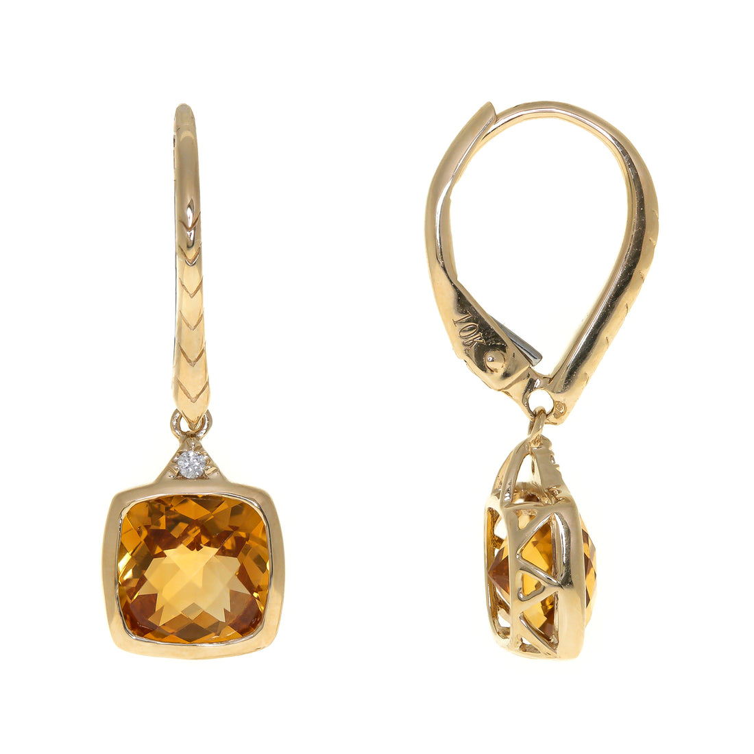 10K Yellow Gold 0.02 ctw Diamond 2.64 ctw Natural Citrine Hoops