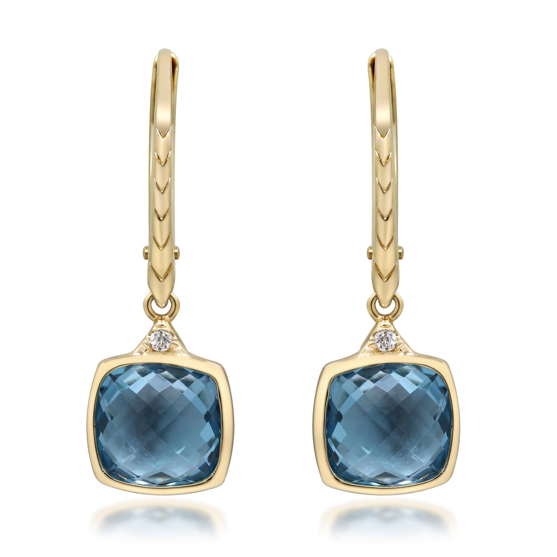 10K Yellow Gold 0.02 ctw Diamond 3.63 ctw Natural Swiss Blue Topaz Earring