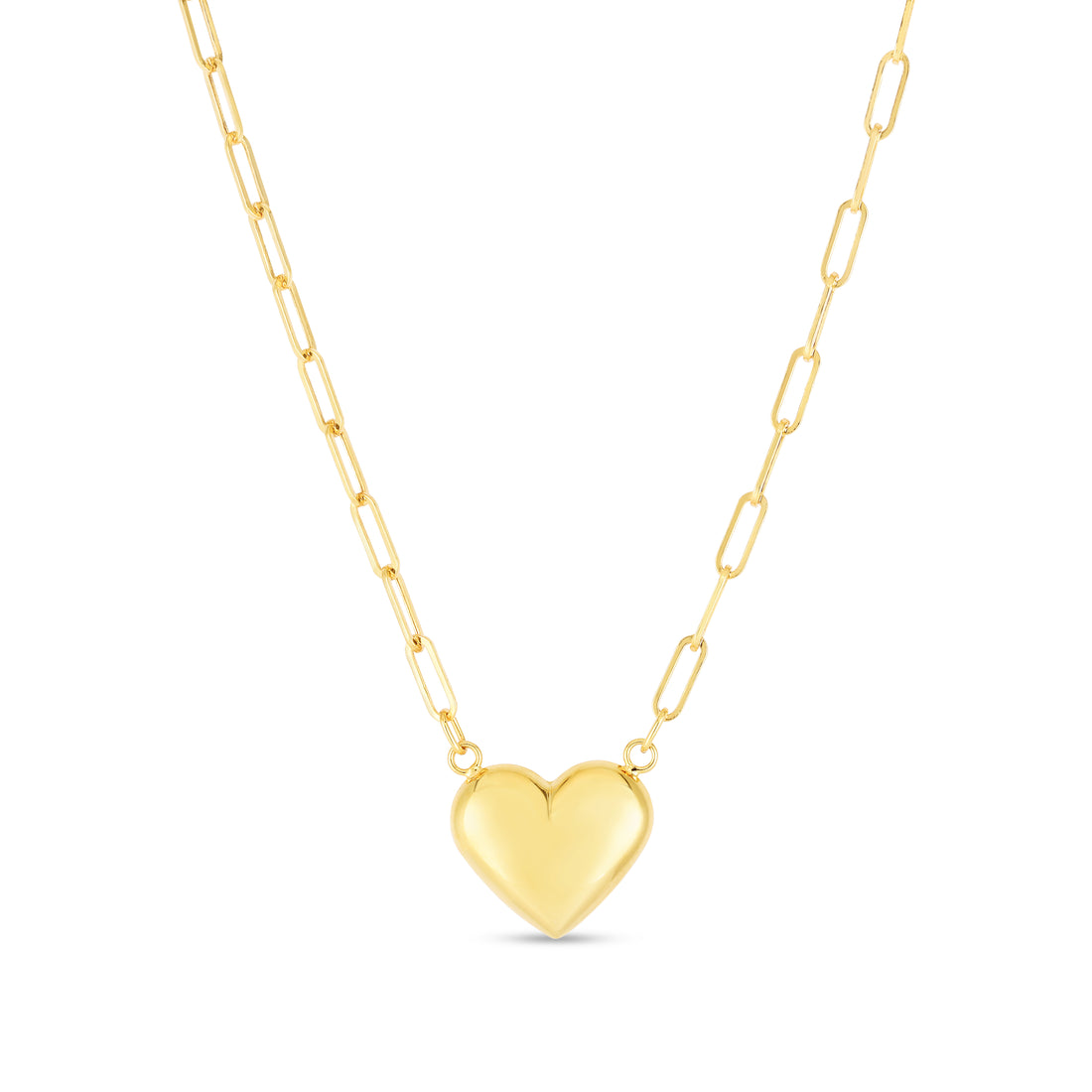 14K Puffed Heart Paperclip Necklace