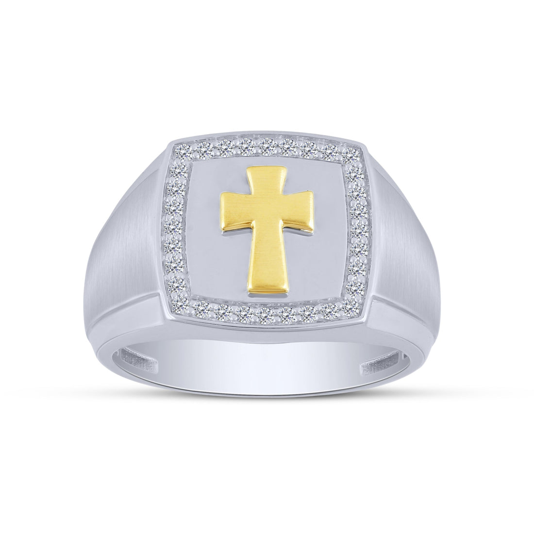 10K Two Tone0.25 ctw Diamond Men'S Cross Ring