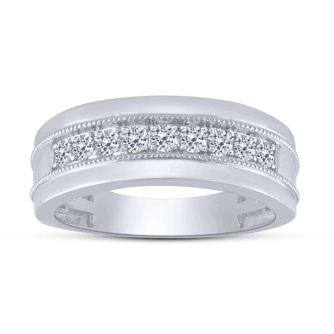 10K White Gold 0.50 ctw Lab Grown 9 Diamond Mens Band