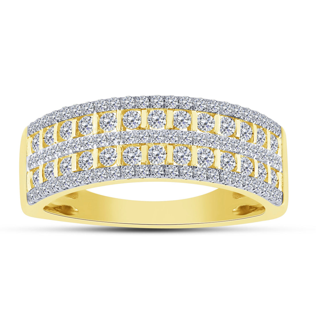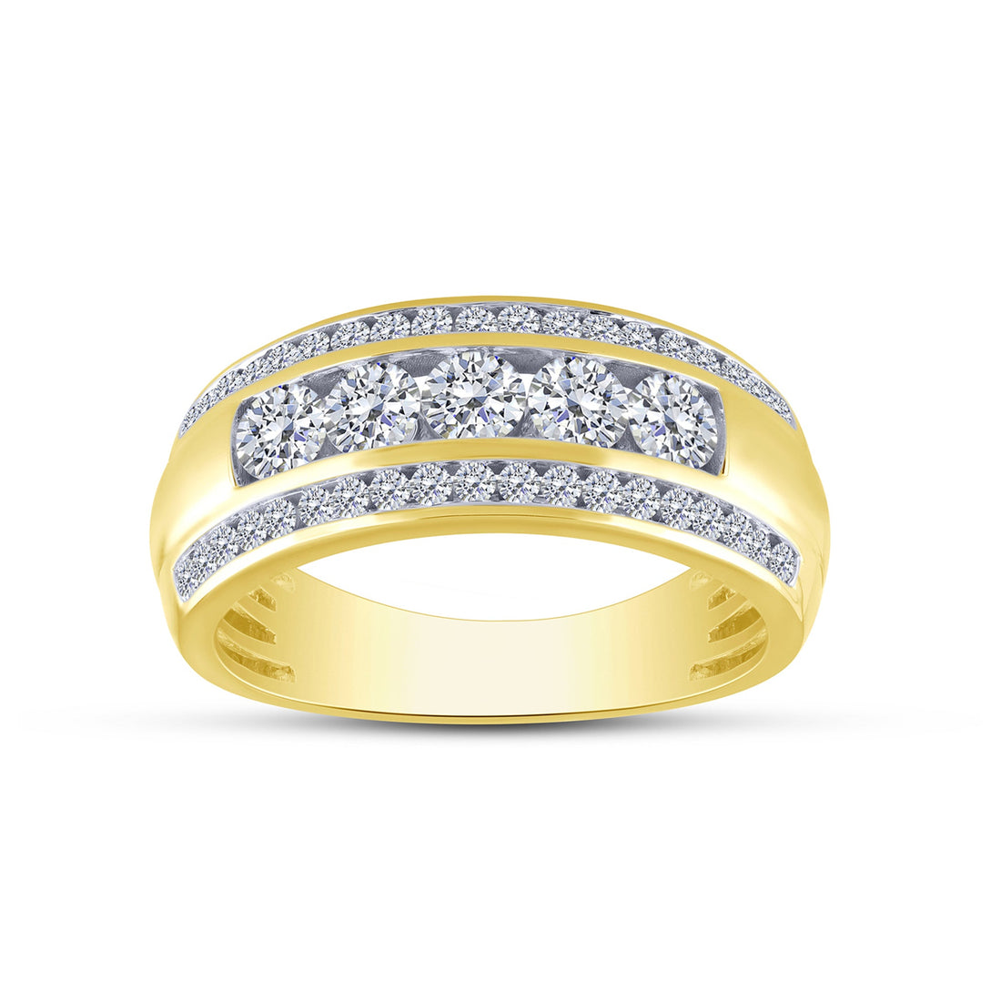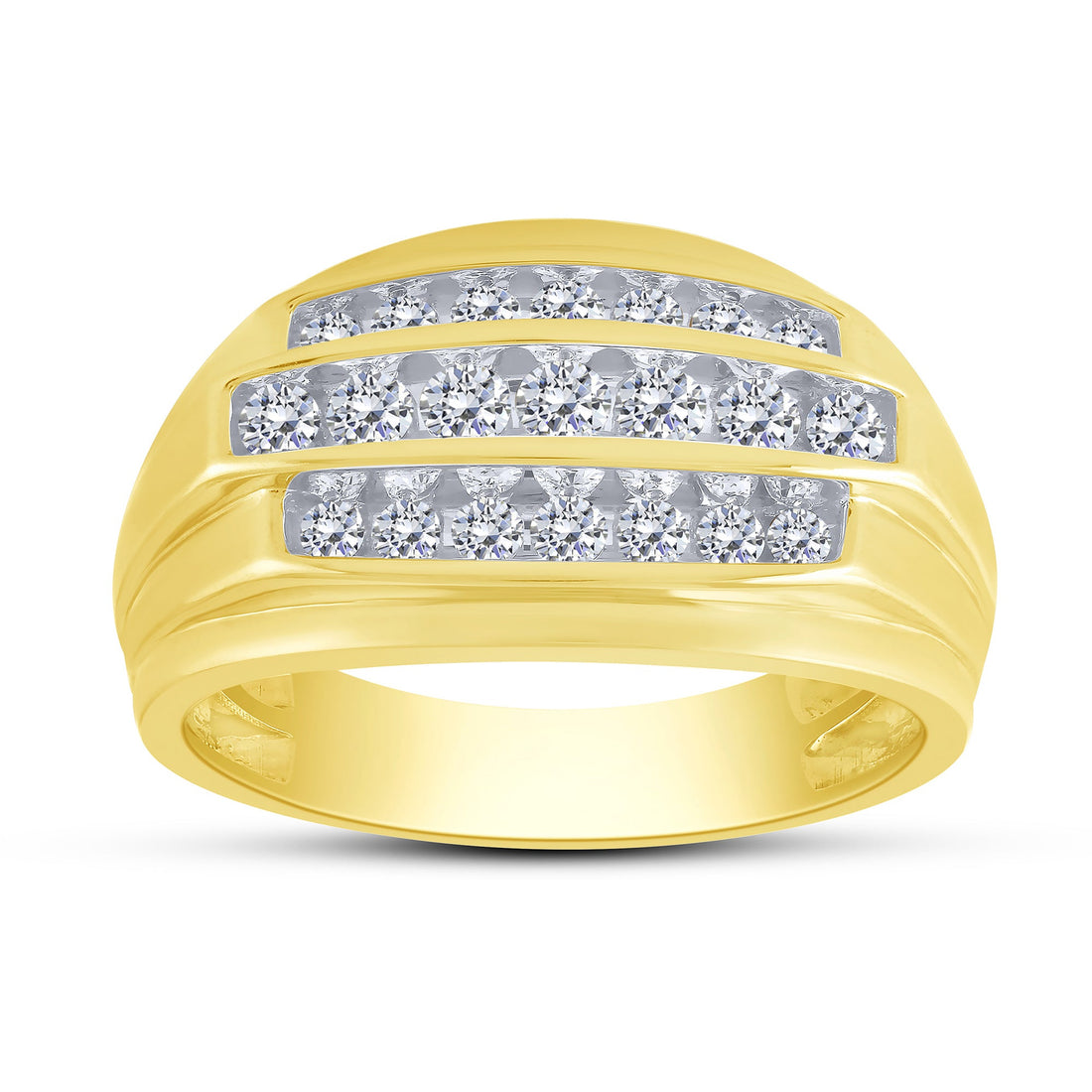 10K Yellow Gold 1.50 ctw Lab Grown Diamond 3 Row Mens Band