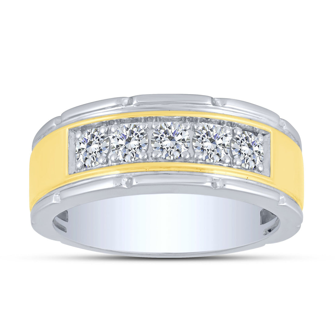 10K Two Tone 0.10 ctw 5 Diamond Mens Band