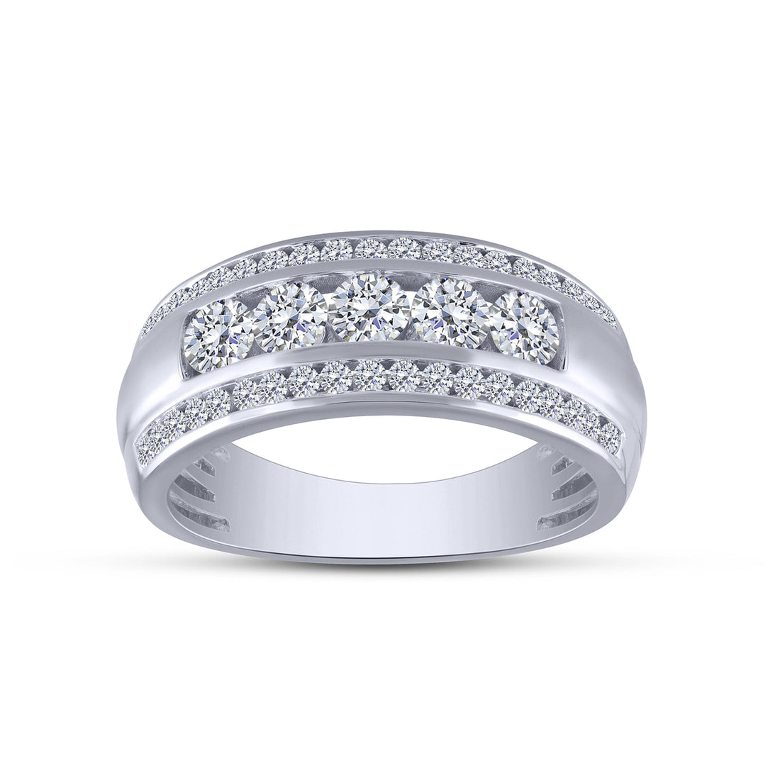 10K White Gold 1.50 ctw Lab Grown Diamond 3 Row Mens Band