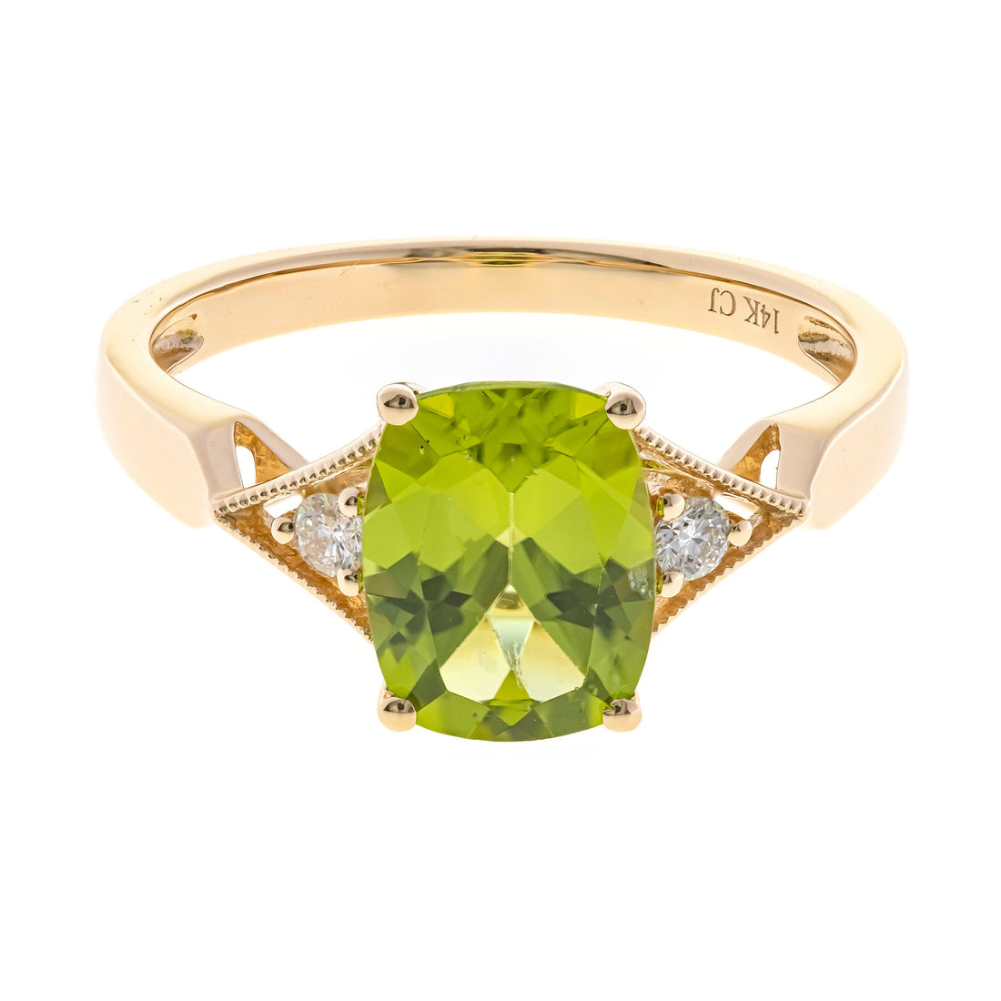 10K Yellow Gold 0.06 ctw Diamond 2.21 Center Natural Cushion Peridot Ring