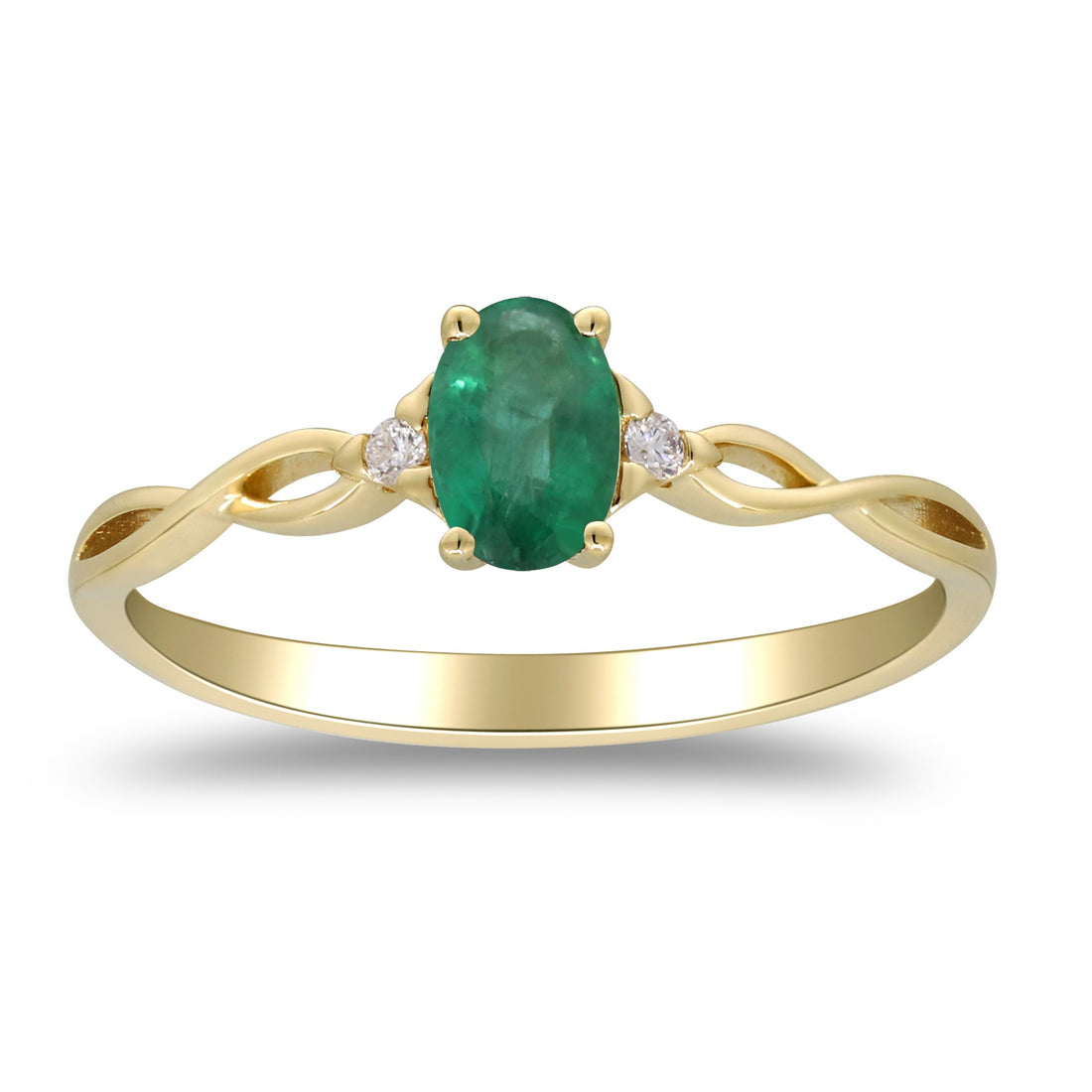 10K Yellow Gold 0.02 ctw Diamond 0.46 Center Natural Oval Emerald Ring
