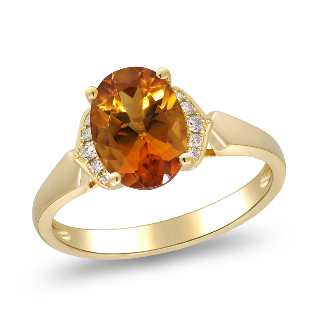 10K Yellow Gold 0.06 ctw Diamond 1.82 Center Oval Natural Citrine Ring
