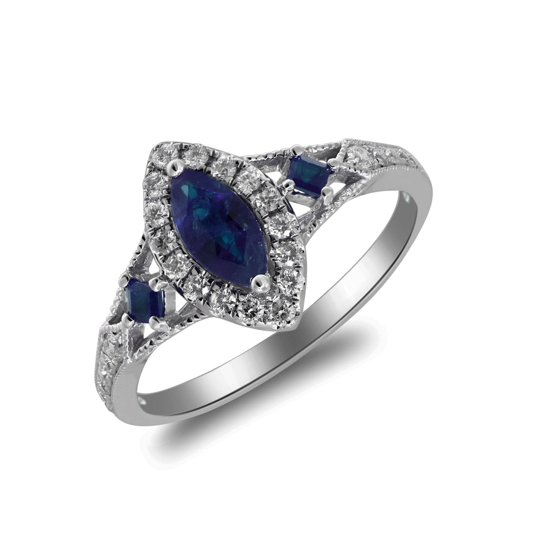 10K White Gold 0.25 ctw Diamond 0.91 ctw Natural Marquise Blue Sapphire Ring
