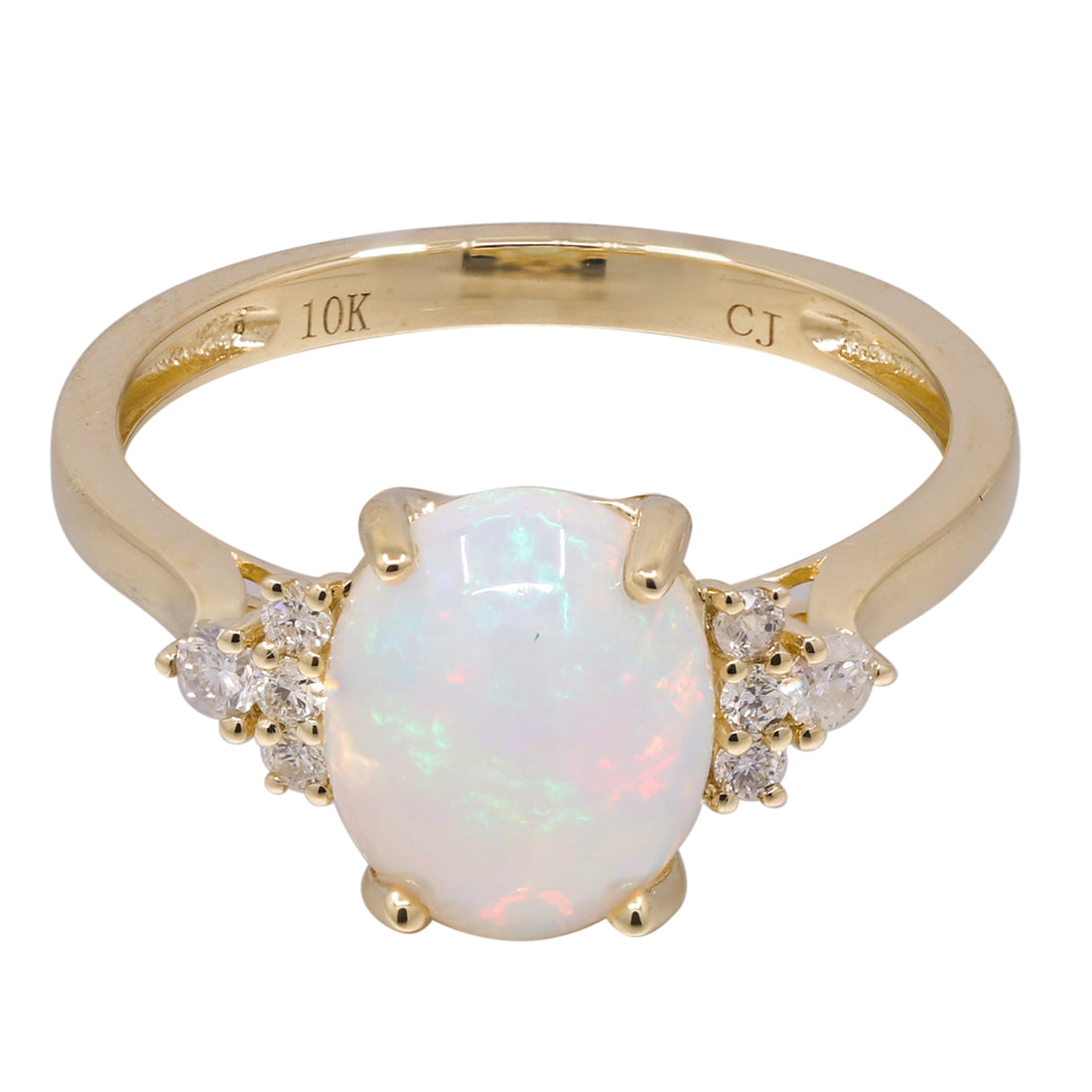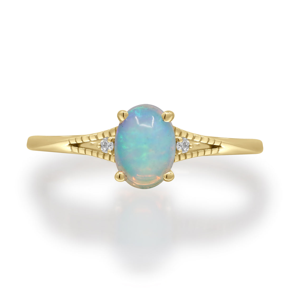 10K Yellow Gold 0.02 ctw Diamond 0.55 Ctr Natural Ethiopian Opal Ring