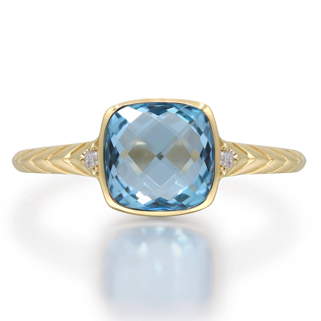 10K Yellow Gold 0.02 ctw Diamond 1.76 Ctr Natural Swiss Blue Topaz Ring
