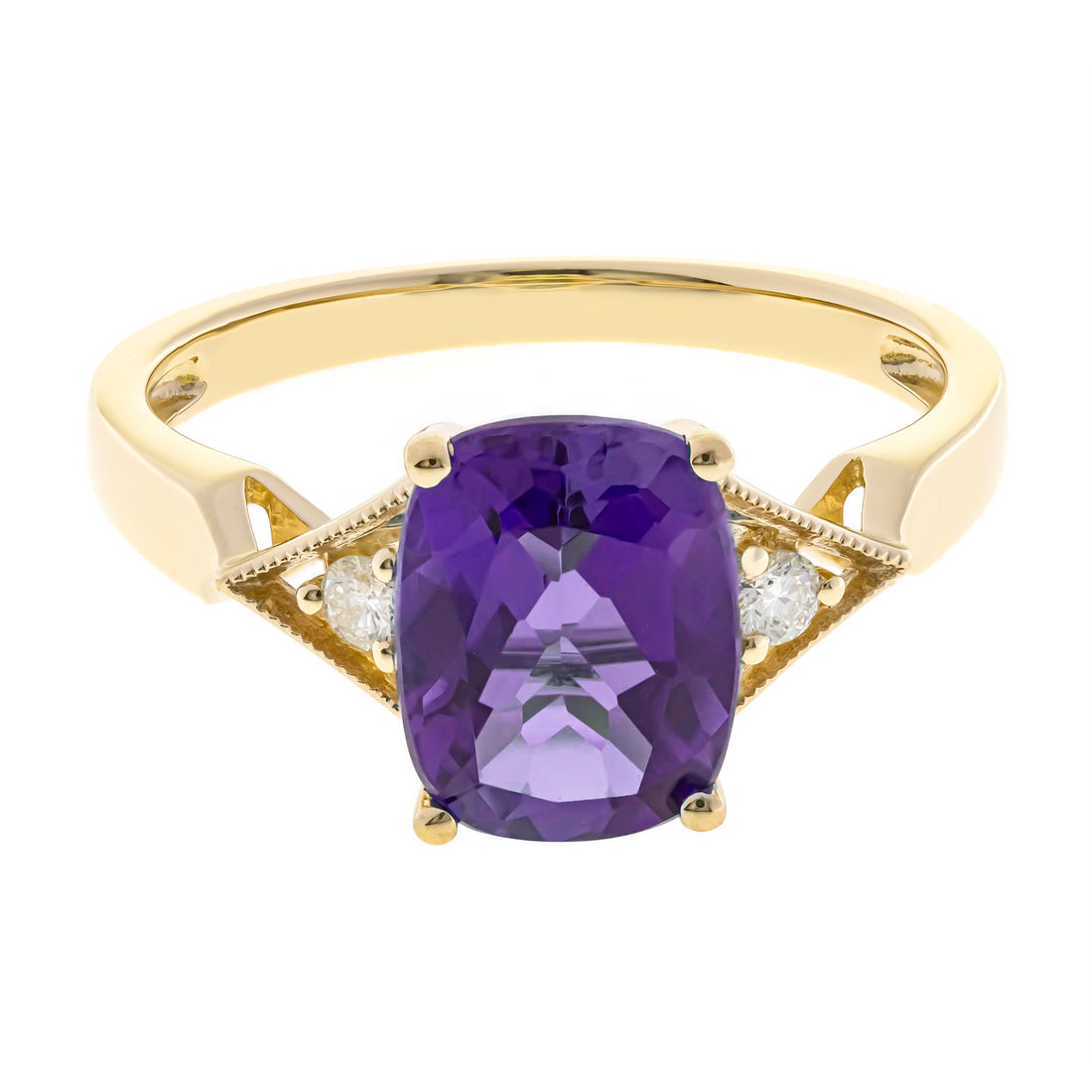 10K Yellow Gold 0.06ctw Diamond 2.09 Ctr Natural Cushion Amethyst Ring