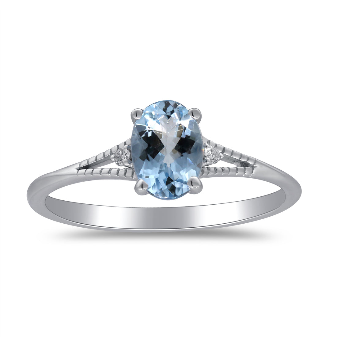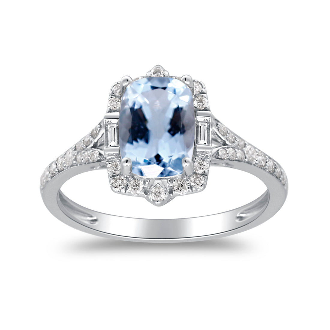 10K White Gold 0.67ctw Diamond 0.75 Ctr Natural Aquamarine Ring