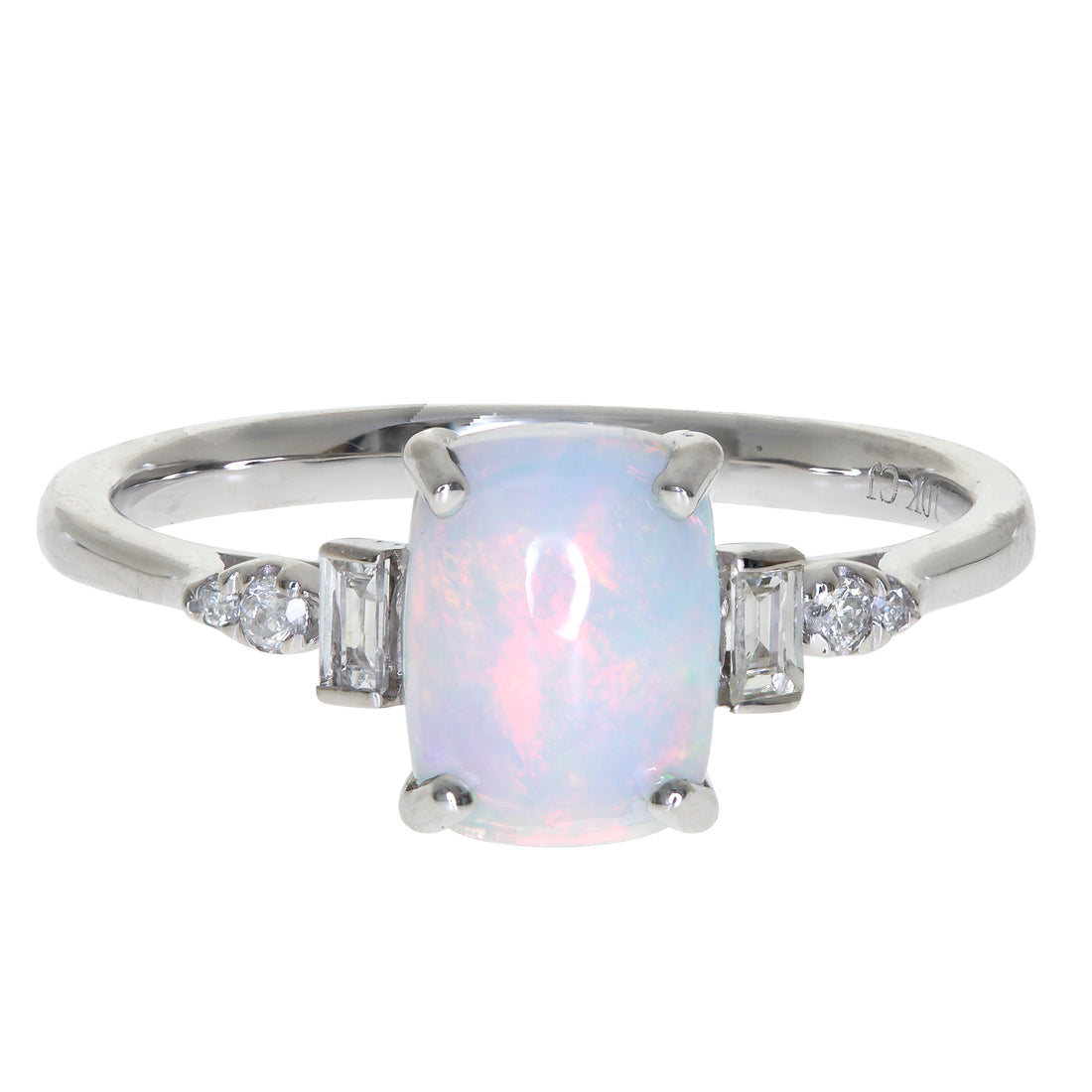10K White Gold 0.12 ctw Diamond 1.02 Ctr Natural Ethiopian-Opal Ring