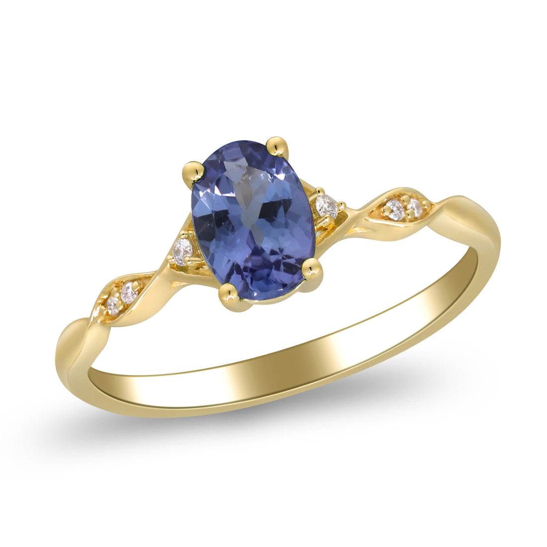 10K Yellow Gold 0.03 ctw Diamond 0.91 Ctr Natural Tanzanite Ring