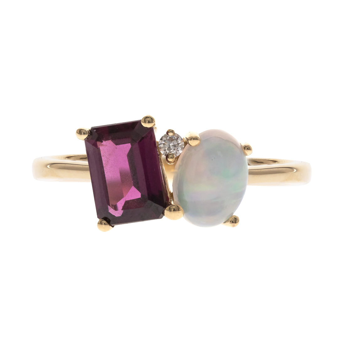 10K Yellow Gold 0.02 ctw Diamond 1.75 Ctr Natural Ethiopian Opal Ring