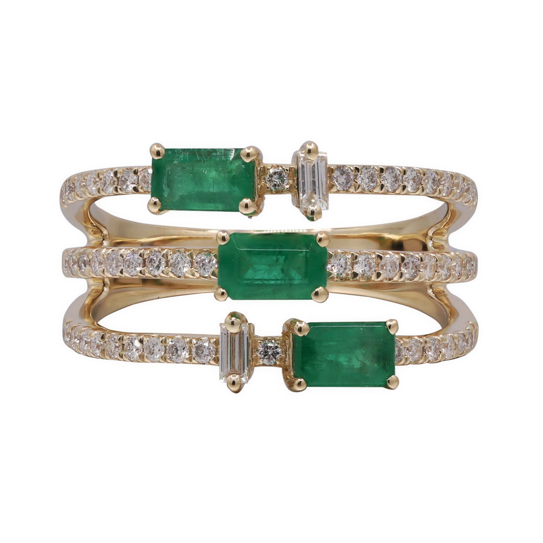 10K Yellow Gold 0.45 ctw Diamond 0.78 Ctr Natural Emerald Baguette Ring