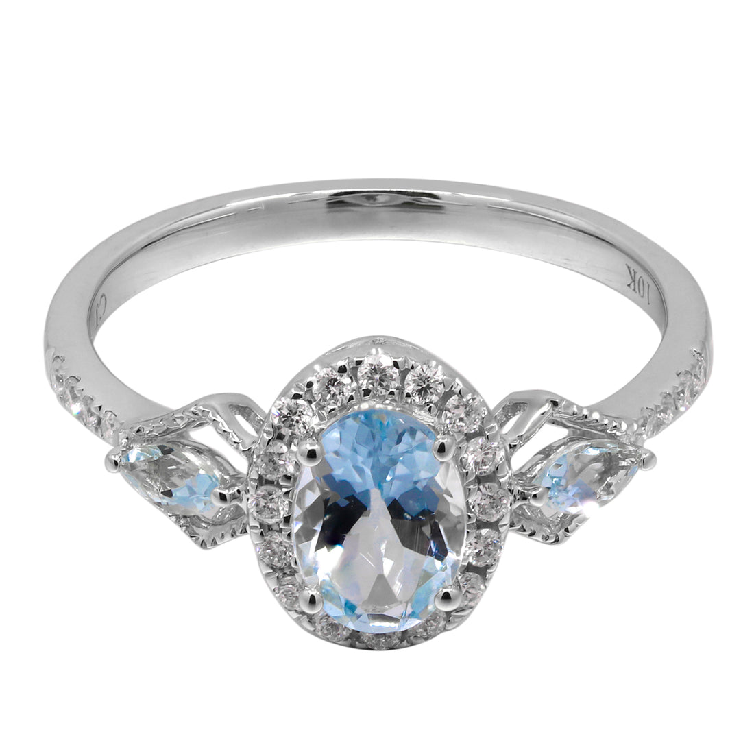 10K White Gold 0.17 ctw Diamond 0.96 Ctr Natural Aquamarine Ring