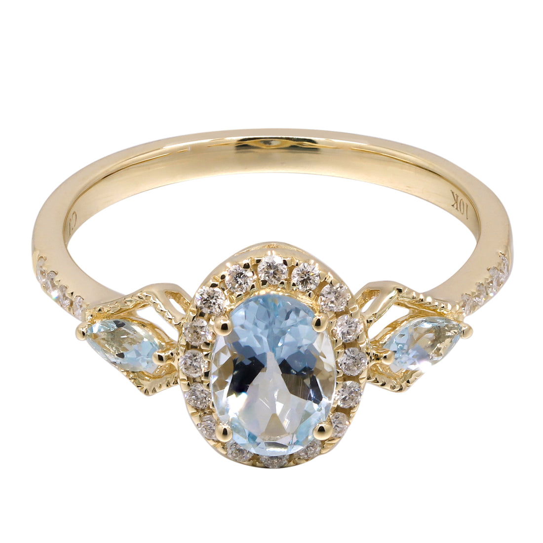 10K Yellow Gold 0.17 ctw Diamond 0.96 Ctr Natural Aquamarine Ring