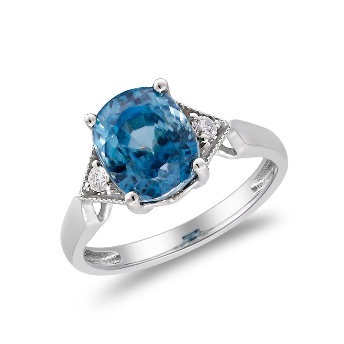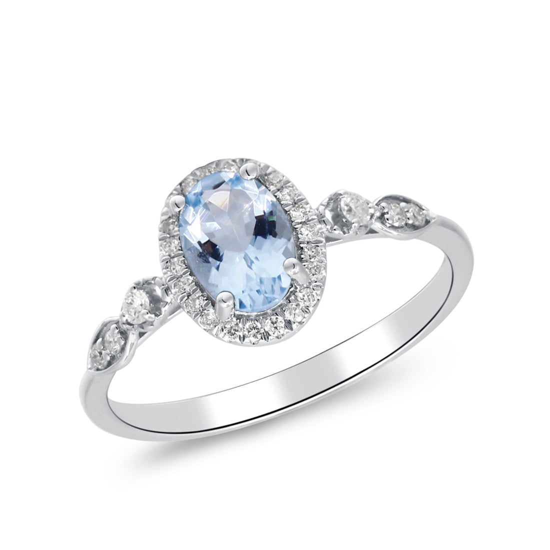 10K White Gold 0.15 ctw Diamond 0.70 Center Natural Oval Aqua-Marine Ring