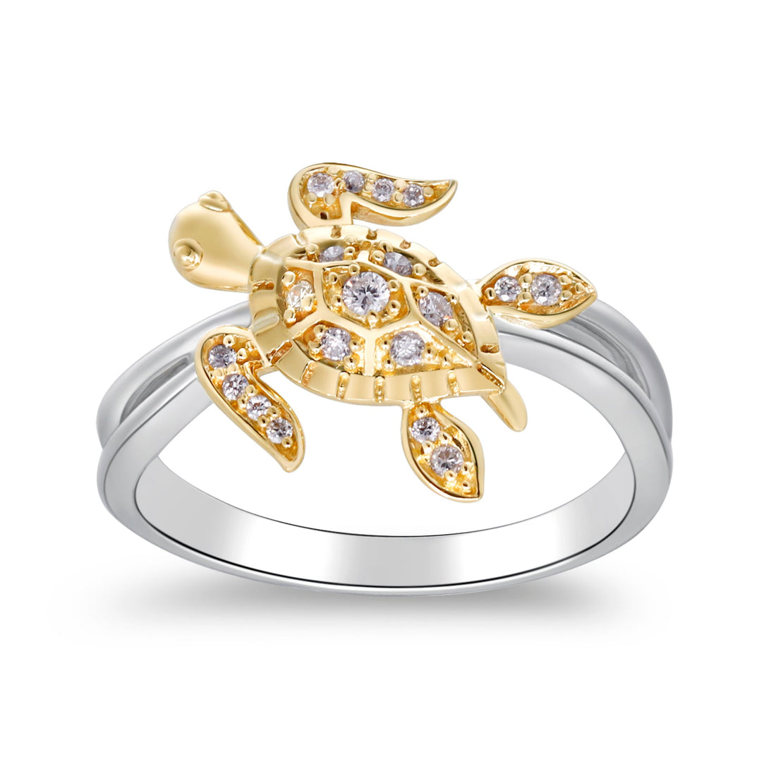 10K Two Tone 0.12 ctw Diamond Turtle Ring