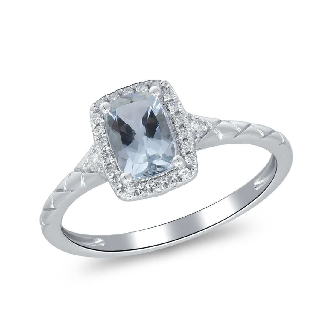 10K White Gold 0.10 ctw Diamond 0.83 Center Natural Cushion Aqua-Marine Ring