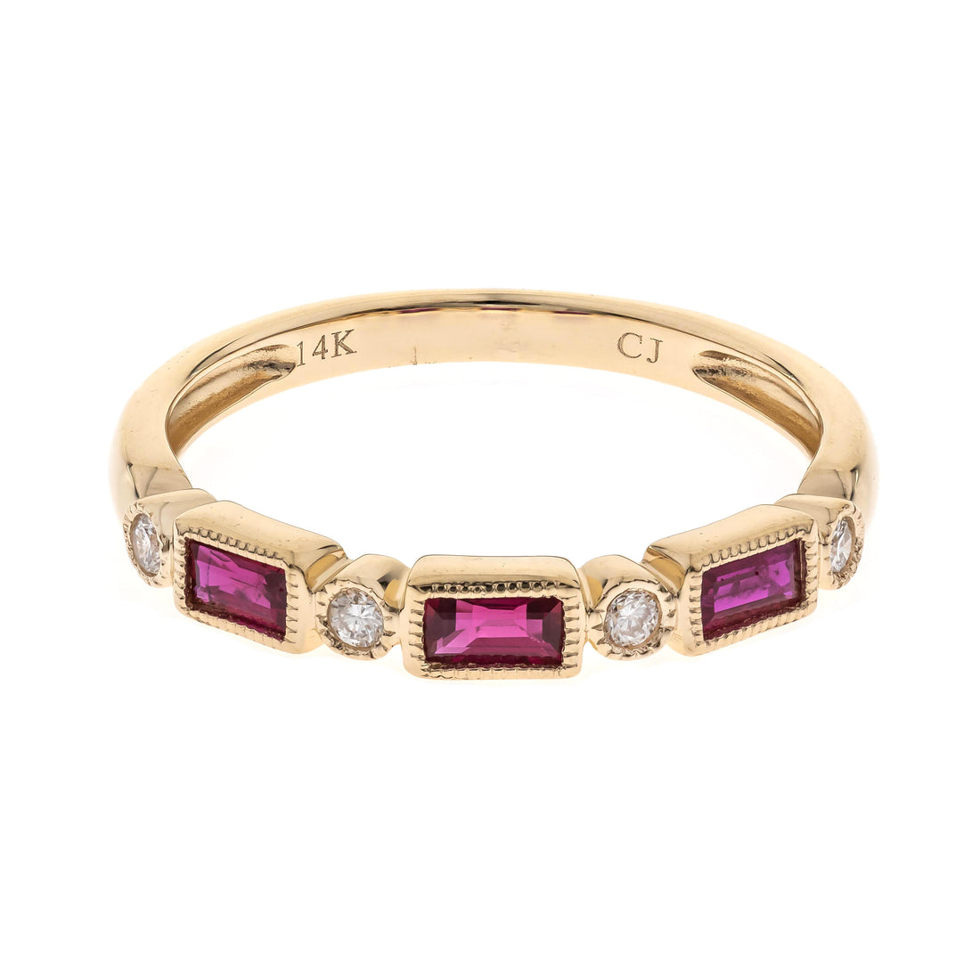 10K Yellow Gold 0.06 ctw Diamond 0.35 Center Natural Ruby Band