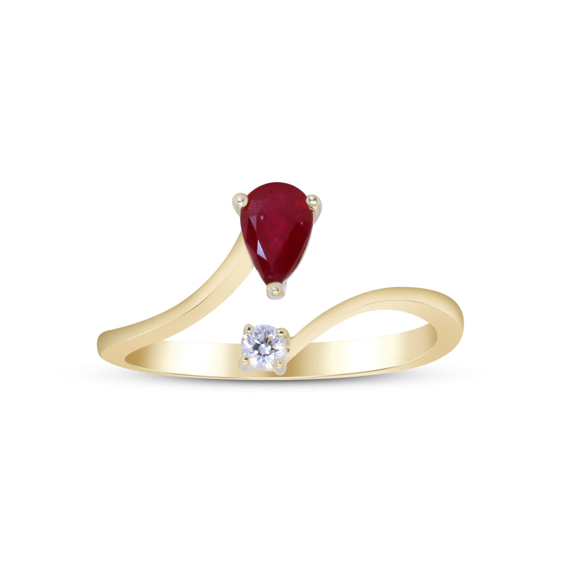 10K Yellow Gold 0.05 ctw Diamond 0.49 Center Natural Pear Ruby Ring