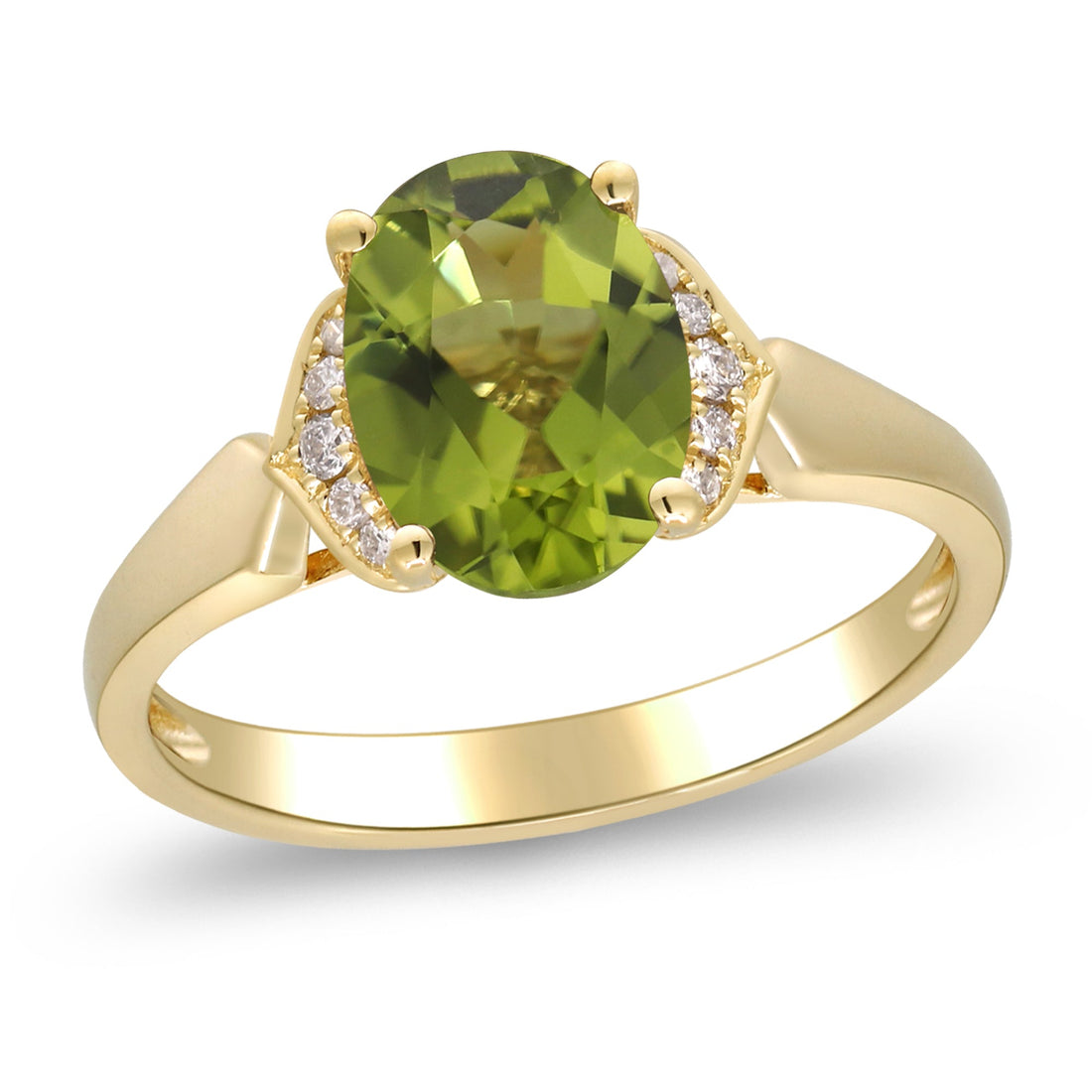 10K Yellow Gold 0.06 ctw Diamond 2.15 Center Oval Natural Peridot Ring
