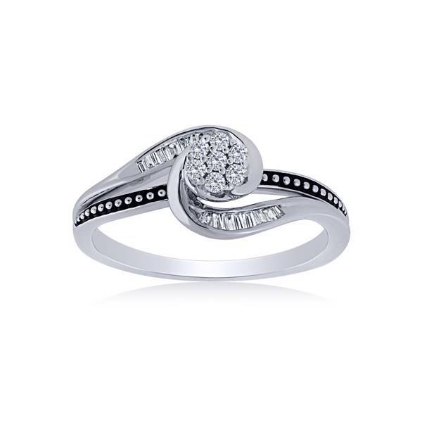 This exquisite 10K white gold promise ring features a delicate band highlighted by a brilliant...
