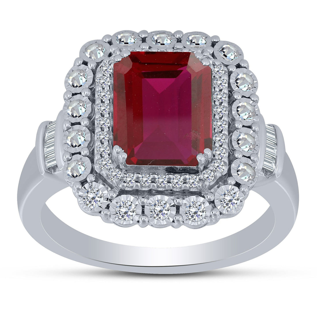 Silver 925 0.40 ctw Diamond Ruby Fashion Ring