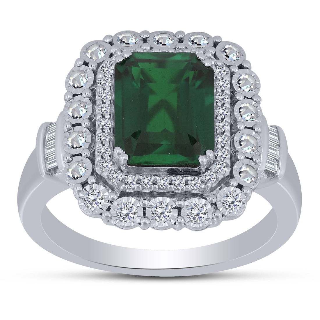 Silver 925 0.40 ctw Diamond Emerald Fashion Ring