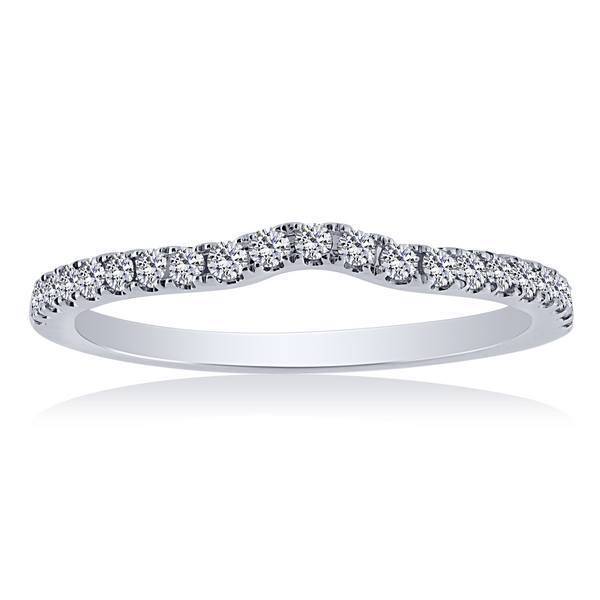 This gracefully contoured band, crafted in lustrous 14k white gold, features a seamless line of...