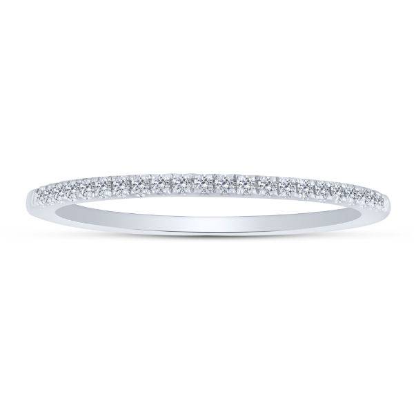 This exquisite 10K white gold band features a delicate line of diamonds, perfect for celebrating...