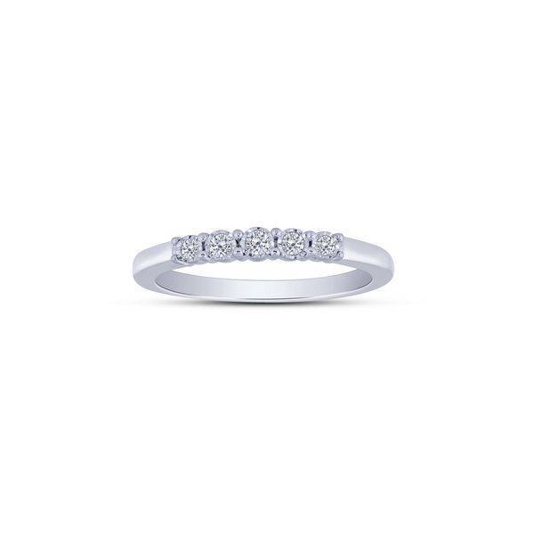 This luminous band features five brilliant natural diamonds, expertly set in classic 10K white gold...