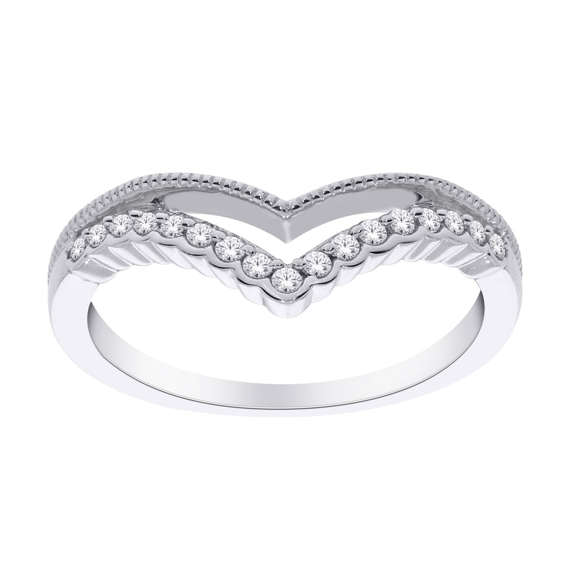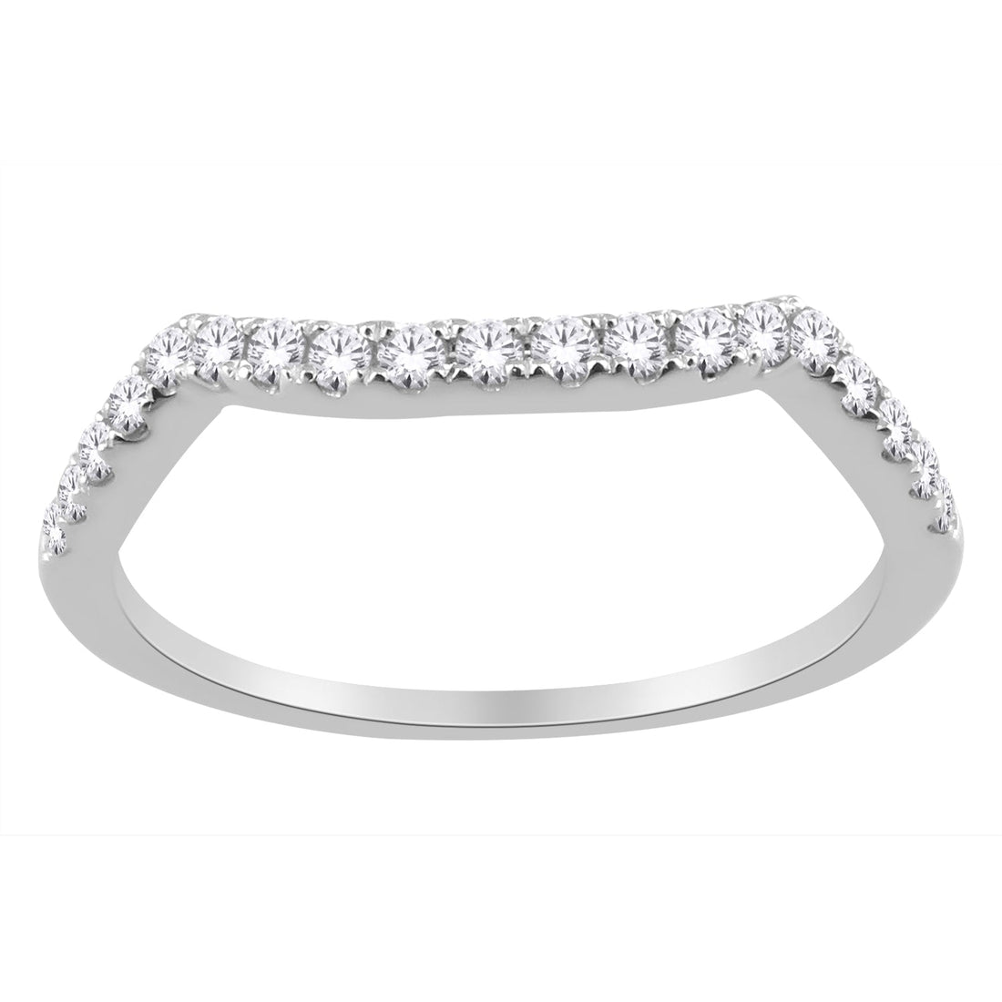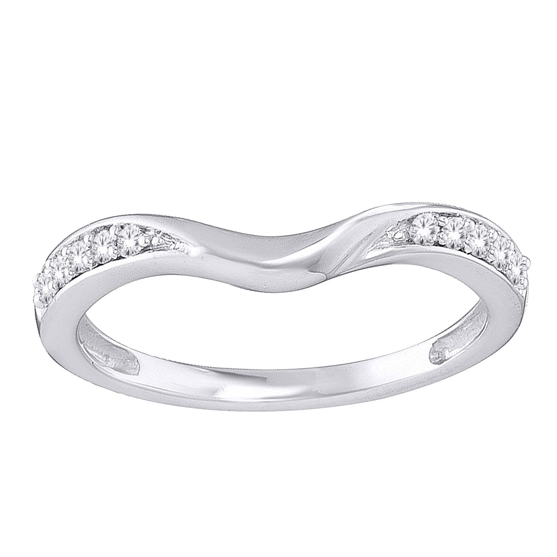 This exquisite 10K white gold band is gracefully shaped in a curvy style, meticulously set...