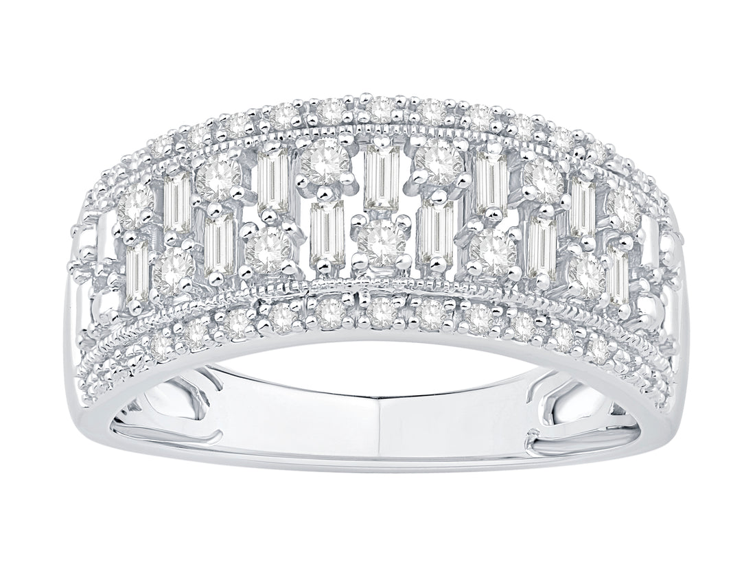 This striking anniversary or fashion ring, the 14K White Gold 0.75 CTW Diamond 2 ROW...