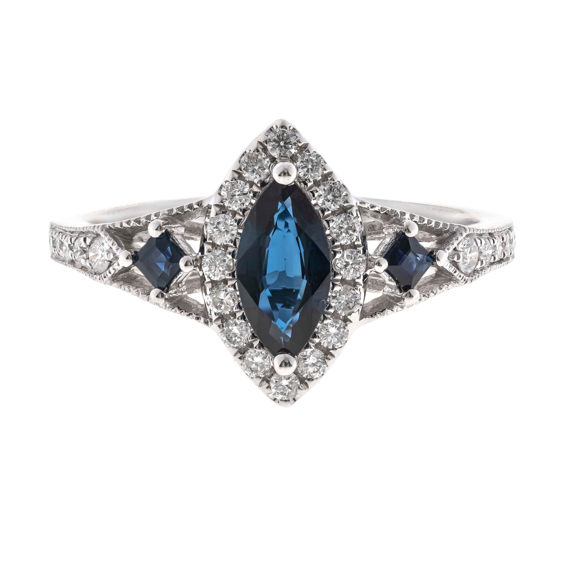 10K White Gold 0.25 ctw Diamond 0.91 ctw Natural Marquise Blue Sapphire Ring