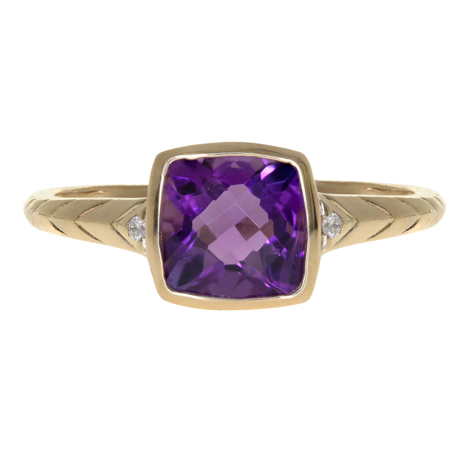 10K Yellow Gold 0.02 ctw Diamond 1.52 Ctr Natural Amethyst Ring