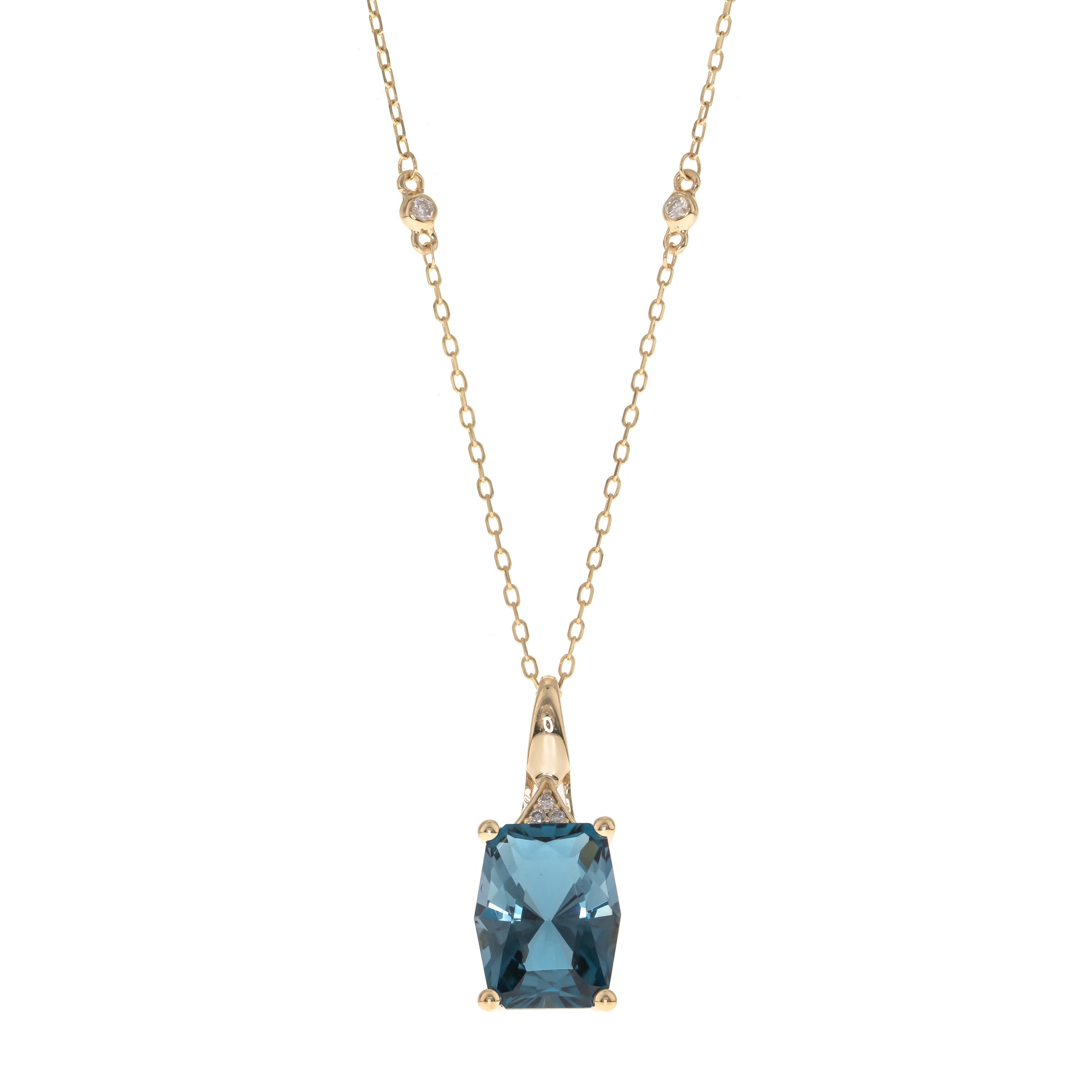 This striking pendant showcases a deep 3.74 carat natural London Blue Topaz, masterfully set in warm 10K yellow gold and highlighted by 0.03 carats of sparkling accent diamonds. The 10K Yellow Gold 0.03 Ctw Diamond 3.74 Ctr Natural London Blue Topaz Pendant provides an elegant pop of color and lasting brilliance for daily wear or special events.