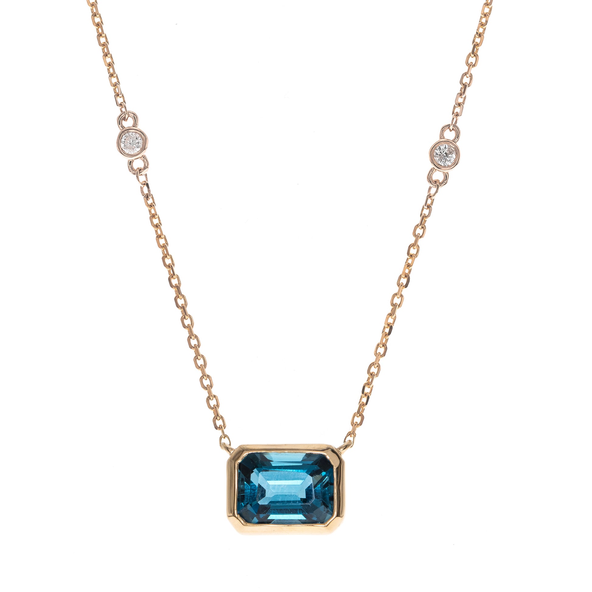 10K Yellow Gold 0.05 ctw Diamond 1.84 Ctr Natural London Blue Topaz Necklace