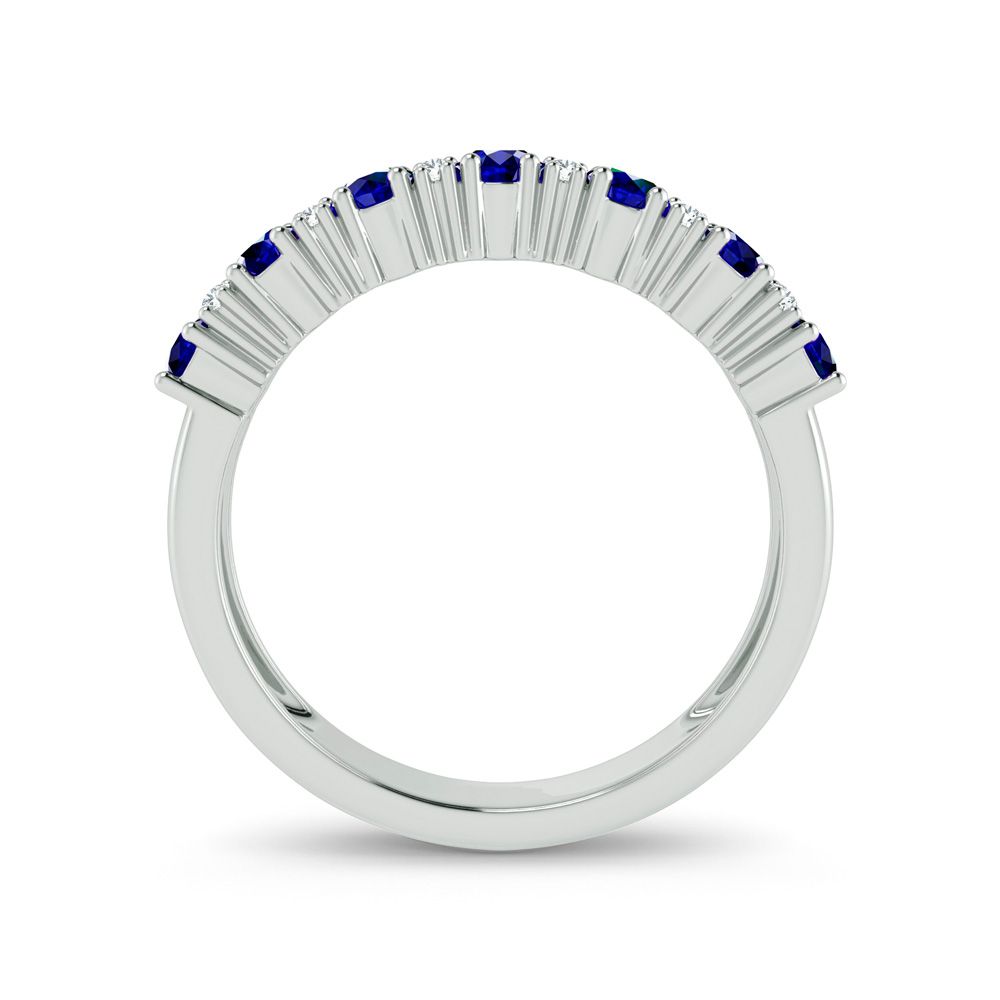 This timeless band features alternating blue sapphires and brilliant diamonds, creating a sparkling circumference that symbolizes eternal style. The 14K white gold 0.10 ctw Diamond Sapphire band adds a luxurious touch to any stack or can be worn as a stunning standalone piece for everyday sophistication.