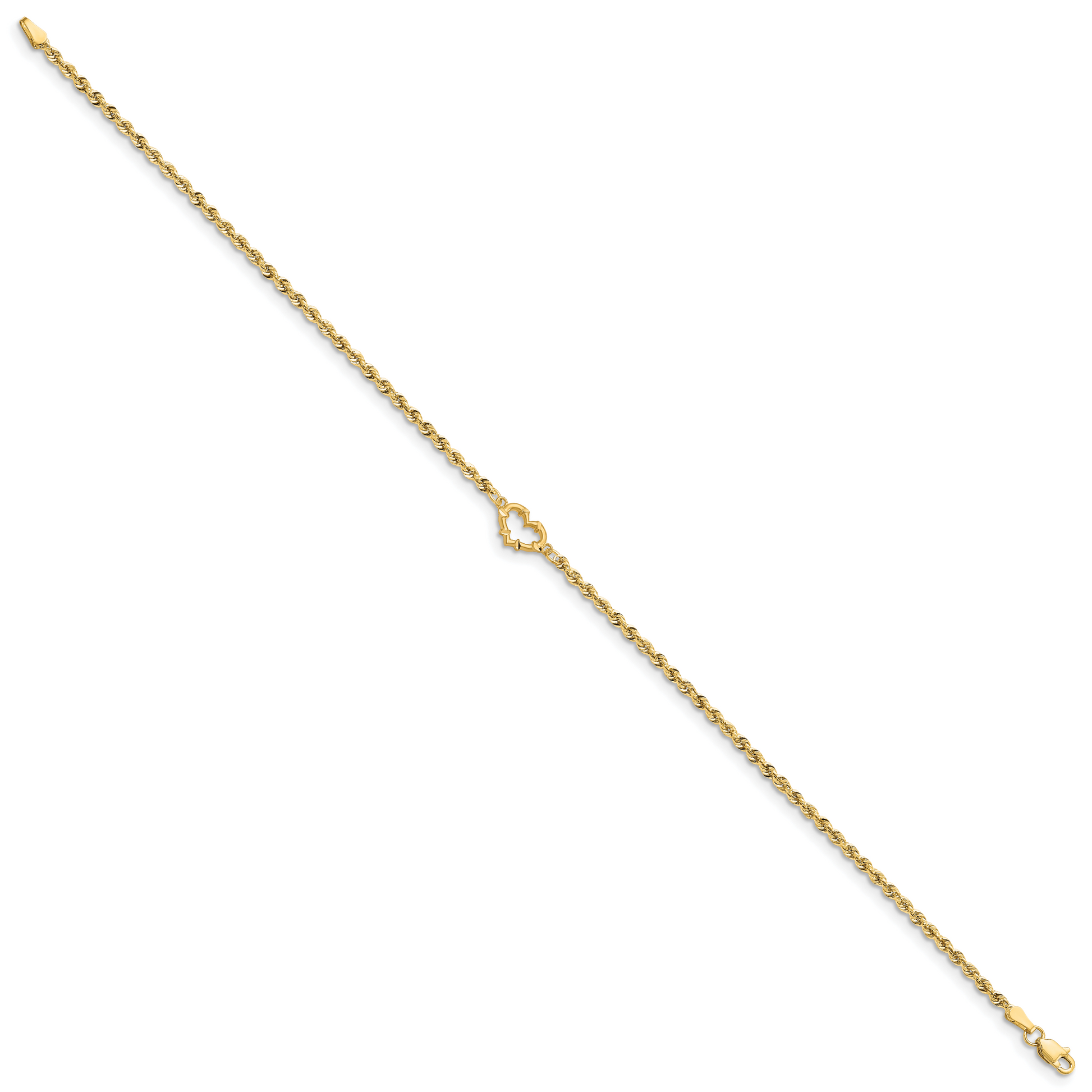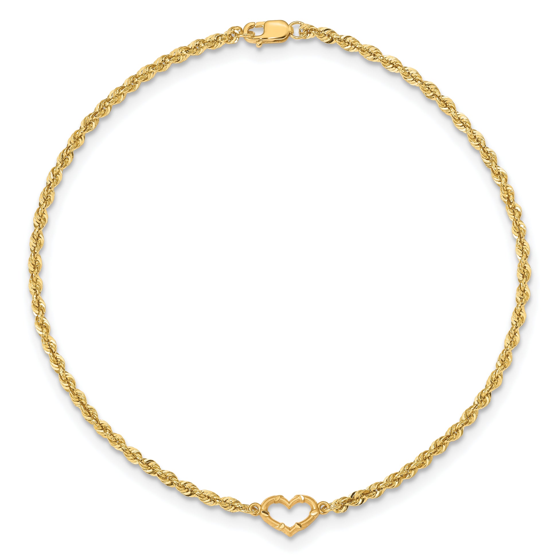 14K Diamond-Cut Open Heart Rope 9Inch Anklet